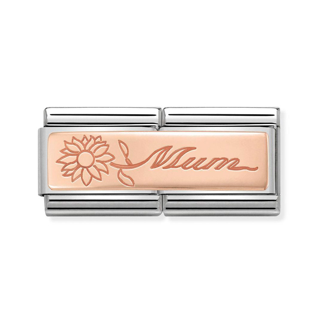 COMPOSABLE CLASSIC DOUBLE ENGRAVED aus Edelstahl, mit 9Kt Rosegold verziert, Mum mit Blume