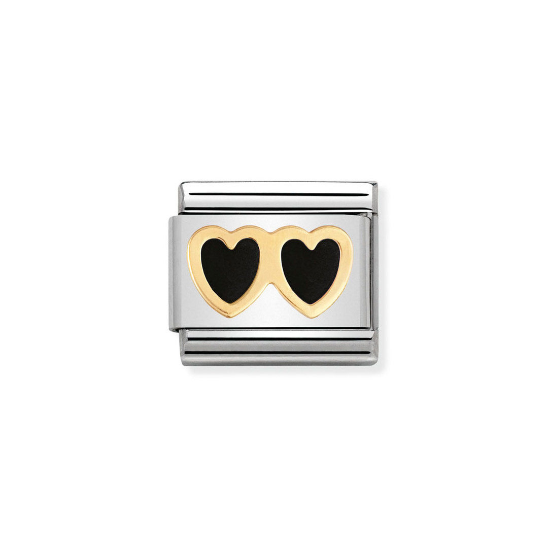 Composable Classic LOVE Edelstahl, Email und 18K-Gold Doppeltes Herz SCHWARZ/SCHWARZ