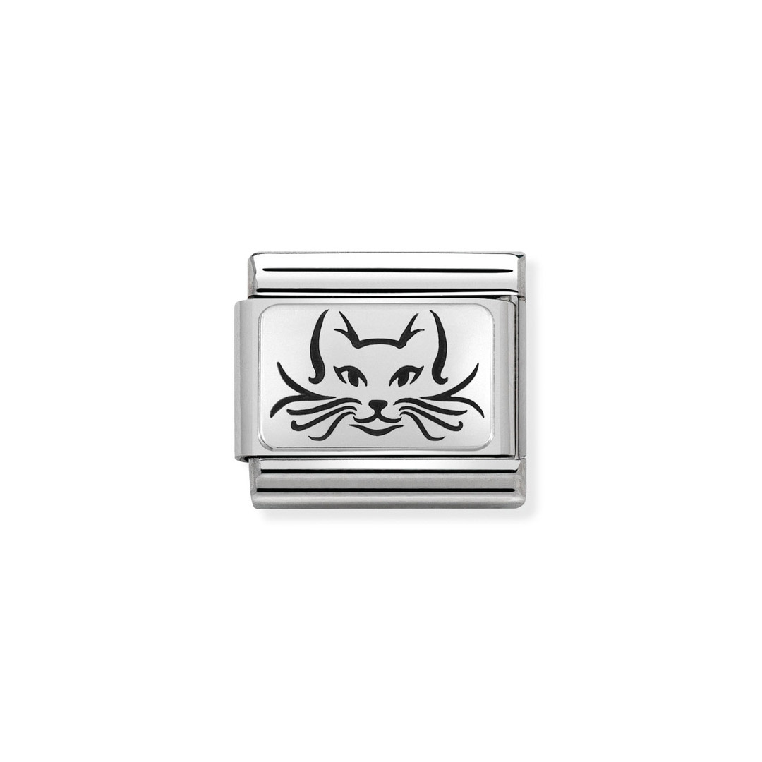 Composable Classic OXIDIERTE PLAKETTE 2 Edelstahl und 925er Silber Katze