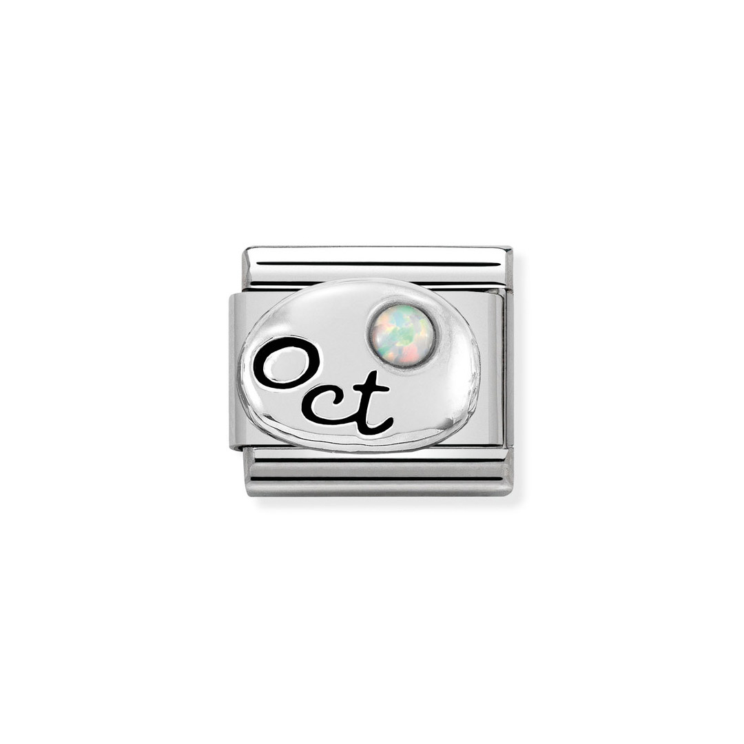 COMPOSABLE CLASSIC SYMBOLE aus Edelstahl, mit 925er Silber und Edelsteinen verziert Oktober OPAL WEISS