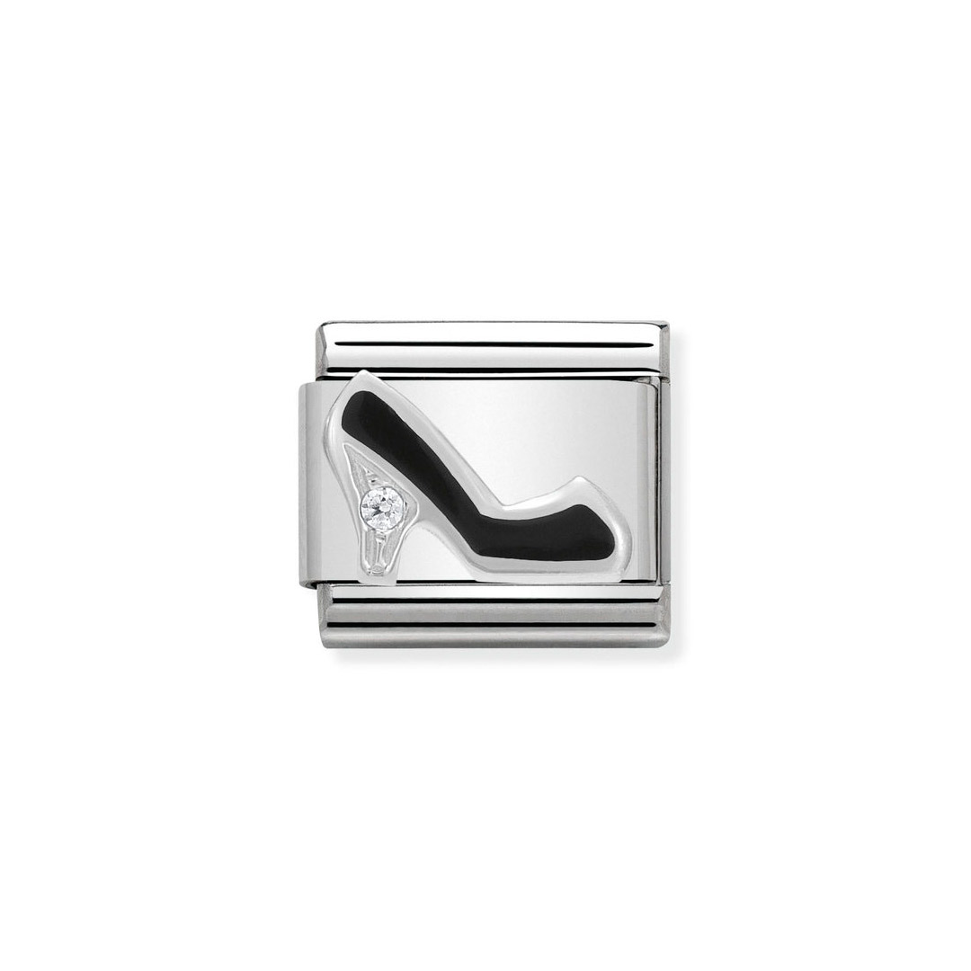 Composable Classic SYMBOLE Edelstahl, Email, 1 Cubic Zirkon und Silber 925 Schuh mit Absatz SCHWARZ