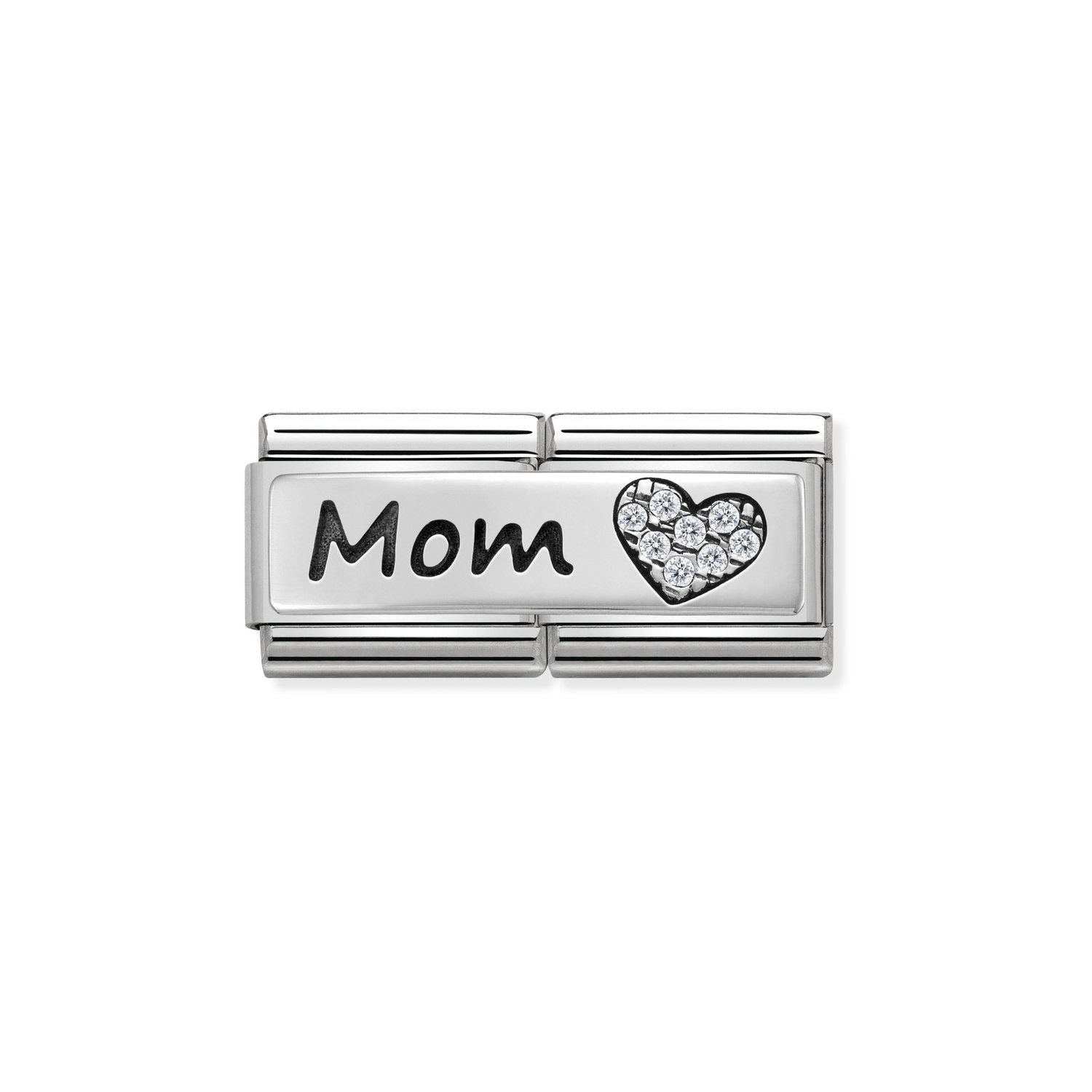 Composable DOUBLE Classic mit Symbolen aus Edelstahl, Cubic Zirkonia und 925er Silber Mama Mom und Herz