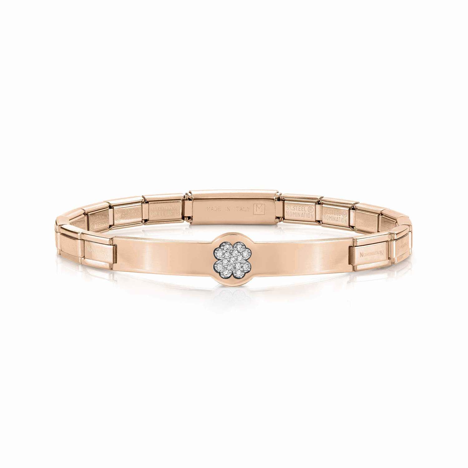 TRENDSETTER Armband aus Edelstahl, rosé PVD-beschictet, mit Cubic-Zirconia-Pavé , in 925er Silber eingefasst Kleeblatt, weiß