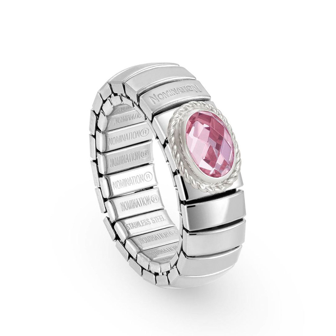 XTE Ring aus Stahl, Silber 925 und Stein FACETTIERT ROSA