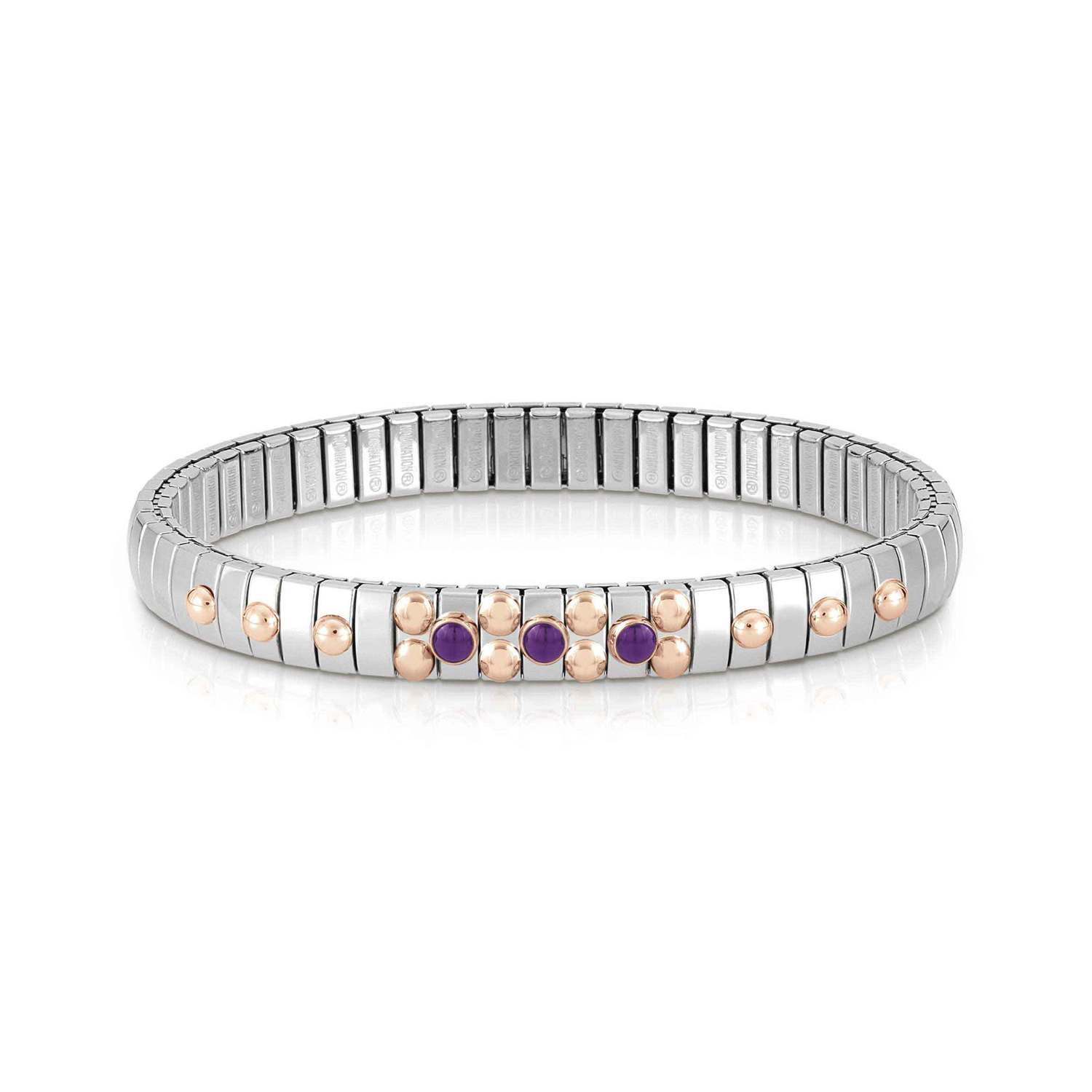 XTE SMALL Armband aus Edelstahl, mit 9Kt Rosegold und 3 Edelsteinen verziert AMETHYST
