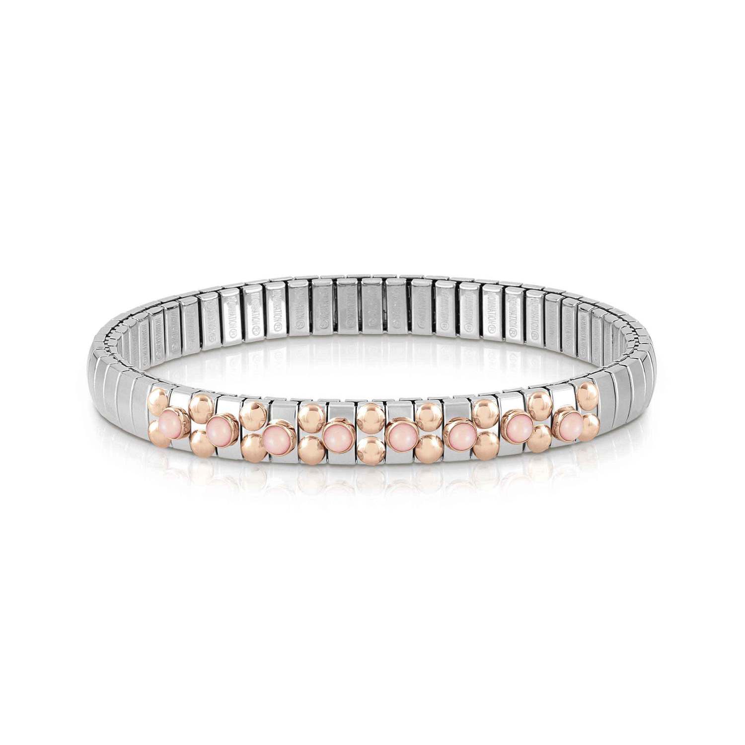 XTE SMALL Armband aus Edelstahl, mit 9Kt Rosegold und 8 Edelsteinen verziert KORALLE ROSA