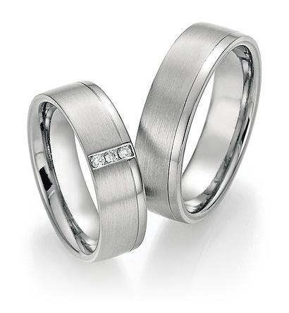 Collection Ruesch, Serie whitestyle Titan + Platin besitzt eine vollendete Kombination aus Titan und edlem 600 Platin. Der Ringkern besteht aus reinem Titan, die Ringoberschicht aus edlem Platin 600. 3 Brillanten zusammen 0,075 ct. W/SI. Breite 6,20 mm. Die Gravur ist kostenlos.