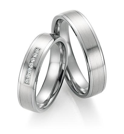 Collection Ruesch, Serie whitestyle Titan + Platin besitzt eine vollendete Kombination aus Titan und edlem 600 Platin. Der Ringkern besteht aus reinem Titan, die Ringoberschicht aus edlem Platin 600. 7 Brillanten zusammen 0,07 ct. W/SI. Breite 5,00 mm. Die Gravur ist kostenlos.