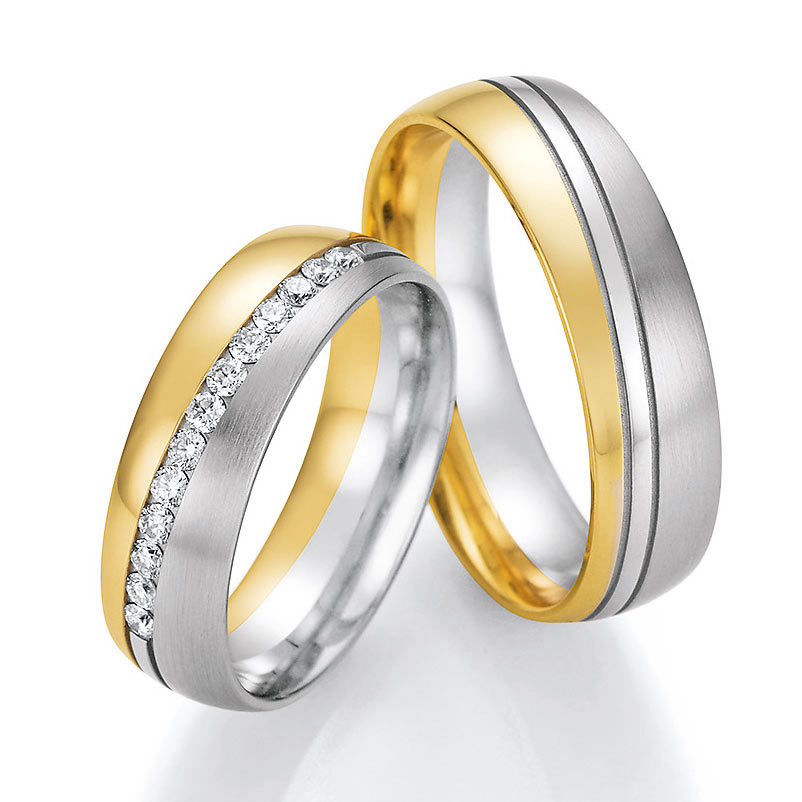 Nowotny-Collection Ruesch Trauringe Weiss-Gelbgold 02/51150-060 + 02/51160-060