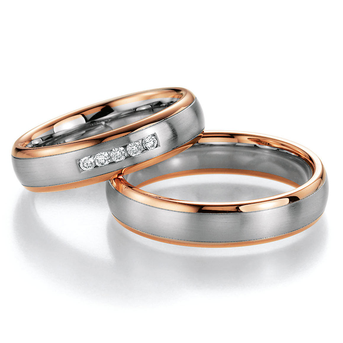 Nowotny-Collection Ruesch Trauringe Weiss-Rotgold 02/40030-050 + 02/40040-050