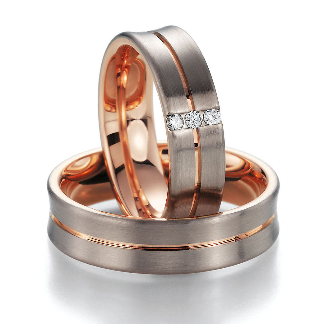 Nowotny-Collection Ruesch Trauringe Weiss-Rotgold 02/40550-060 + 02/40560-060