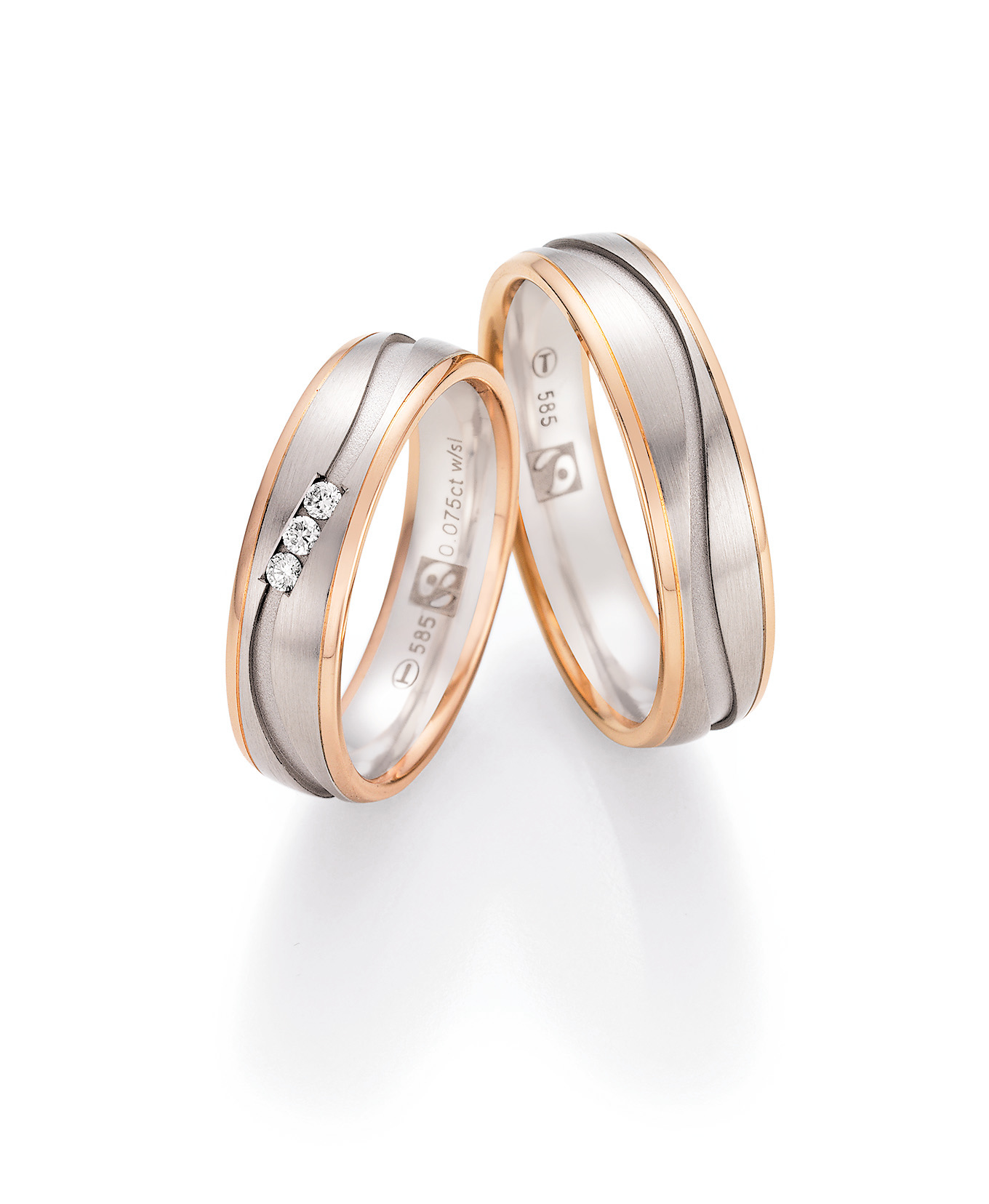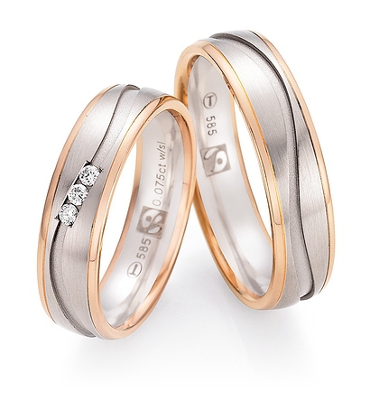 Nowotny-Collection Ruesch Trauringe Weiss-Rotgold 33/30090-055 + 33/30100-055