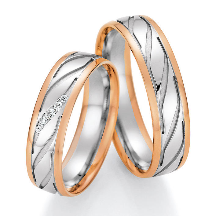 Nowotny-Collection Ruesch Trauringe Weiss-Rotgold 66/46110-055 + 66/46120-055