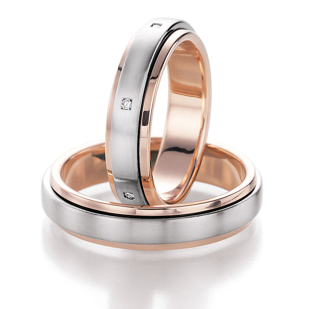 Nowotny-Collection Ruesch Trauringe Weiss-Rotgold 71/10030-050 + 71/10040-050