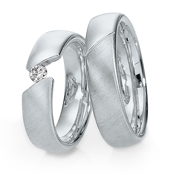 Manufaktur Saint Maurice - Deutschland. Kollektion Pas de Deux. Die Pforzheimer Manufaktur stellt nicht nur wunderschönen Schmuck sondern auch perfekt aussehende Trauringe. 585 Gelbgold seidenmatt und poliert. 1 Brillant 0,15 ct. W/SI. Breite 6,00 mm.
