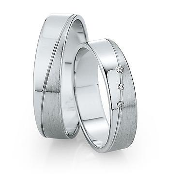 Manufaktur Saint Maurice - Deutschland. Kollektion SLIM LINE. Die Pforzheimer Manufaktur stellt nicht nur wunderschönen Schmuck sondern auch perfekt aussehende Trauringe. Trauringe in 585 Gelbgold seidenmatt und poliert. 3 Brillanten zusammen 0,017 ct. W/SI. Breite 5,00 mm.