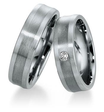 600 Platin , 585 Weissgold DR 854500 / HR 854510 Satiniert Breite 6,0 mm 1 Brillant 0,05ct W/SI Made in Germany