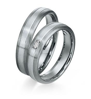 950 Platin , 750 Weissgold DR 854800 / HR 854810 Satiniert Breite 5,0 mm 1 Princess-Diamant 0,06ct W/IF Made in Germany