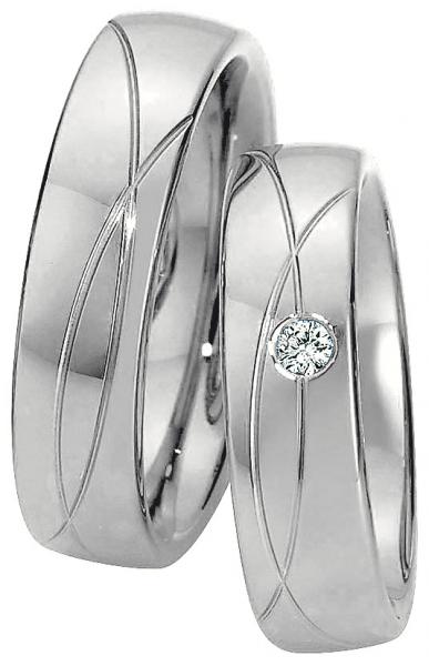 Manufaktur Saint Maurice - Deutschland. Kollektion Pas de Deux. Die Pforzheimer Manufaktur stellt nicht nur wunderschönen Schmuck sondern auch perfekt aussehende Trauringe. 585 Weissgold poliert mit Fugen. 1 Brillant 0,055 ct. W/SI. Breite 6,00 mm.