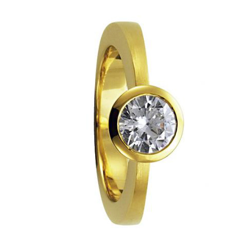 Manufaktur Saint Maurice - Deutschland. Kollektion Solitaire. Die Pforzheimer Manufaktur stellt wunderschönen Schmuck. Verlobungsring in 585 Gelbgold seidenmatt. 1 Brillant 1,00 ct. W/SI. Schiene massiv im Verlauf. Zargenfassung poliert.