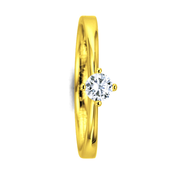 Manufaktur Saint Maurice - Deutschland. Kollektion Engagement. Die Pforzheimer Manufaktur stellt wunderschönen Schmuck. Verlobungsring in 585 Gelbgold poliert. 1 Brillant 0,25 ct. W/SI. Breite, Schiene im Verlauf. 4 er Krappe Fassung.