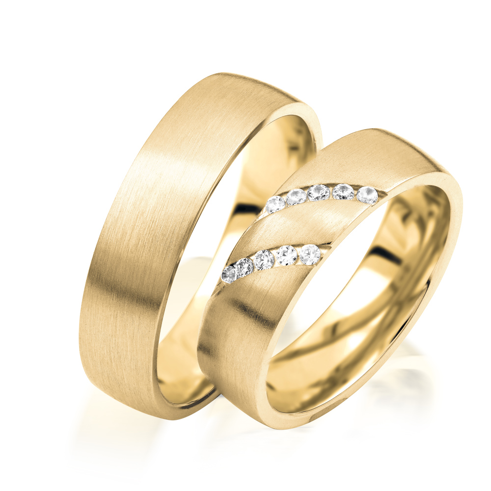 Simon & Söhne - MADE IN GERMANY aus Gütersloh. Kollektion aus der Serie Fantasy 1. In der vielfältigen Auswahl und qualitativen Design finden Sie mit Sicherheit ihre Taruringe fürs Leben. Sie können selbstverständlich auch die Ringe einzeln bestellen. Senden Sie uns hierfür eine E-Mail einfach zu. Exklusive Trauringe aus 333 Gelbgold seidenmatt. Breite 5,50 mm. Gerne auch in weiteren Legierung, siehe Option-Feingehalt erhältlich.