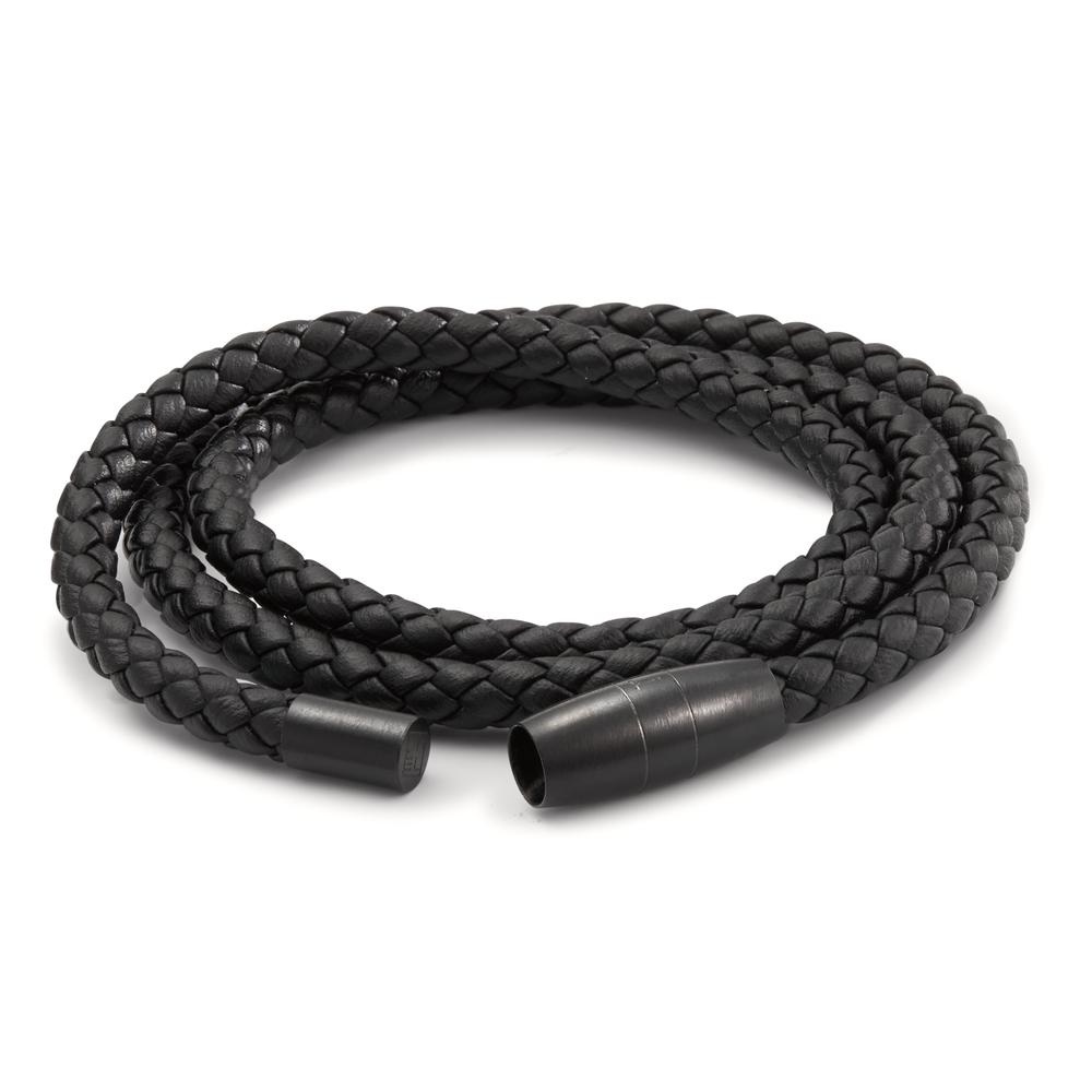 Lederarmband Ray, Ultra Black Magnetverschluss aus Edelstahl mit 3-fach gewickeltem Flechtleder schwarz, 19 cm