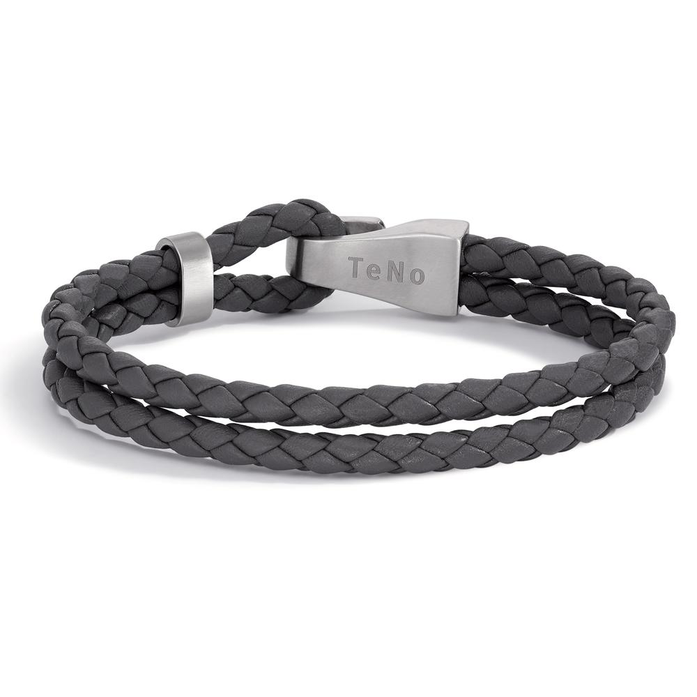 TeNo Lederarmband Vadino Shadow Grey mit Knebelverschluss aus Edelstahl. Das lässig-elegante Armband in Dunkelgrau ist aus hochwertigem Flechtleder und gemacht für einen coolen Look & Style. Durch die verstellbare Edelstahlschlaufe lässt sich das Armband leicht an- und ausziehen.