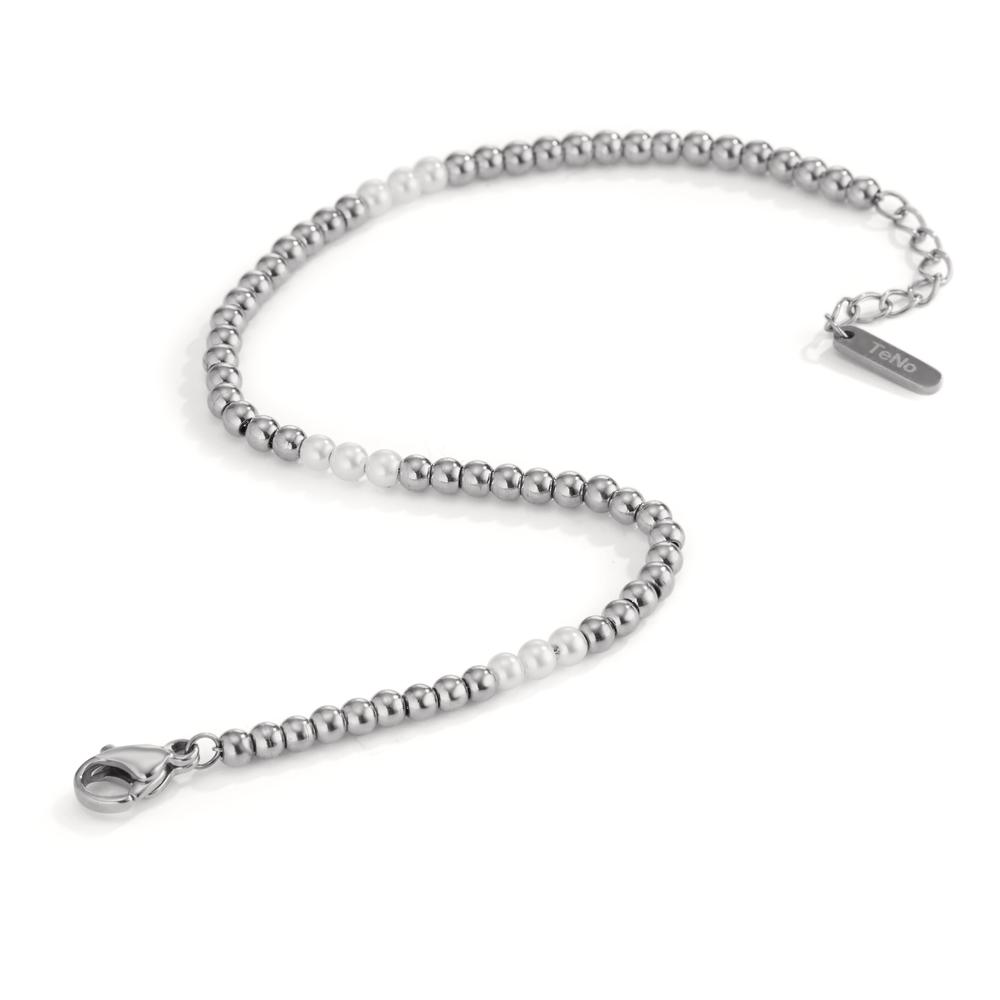 TeNo Kugelarmband Miyako aus Edelstahl mit weissen Muschelperlen, 17,5- 19,5cm verstellbar