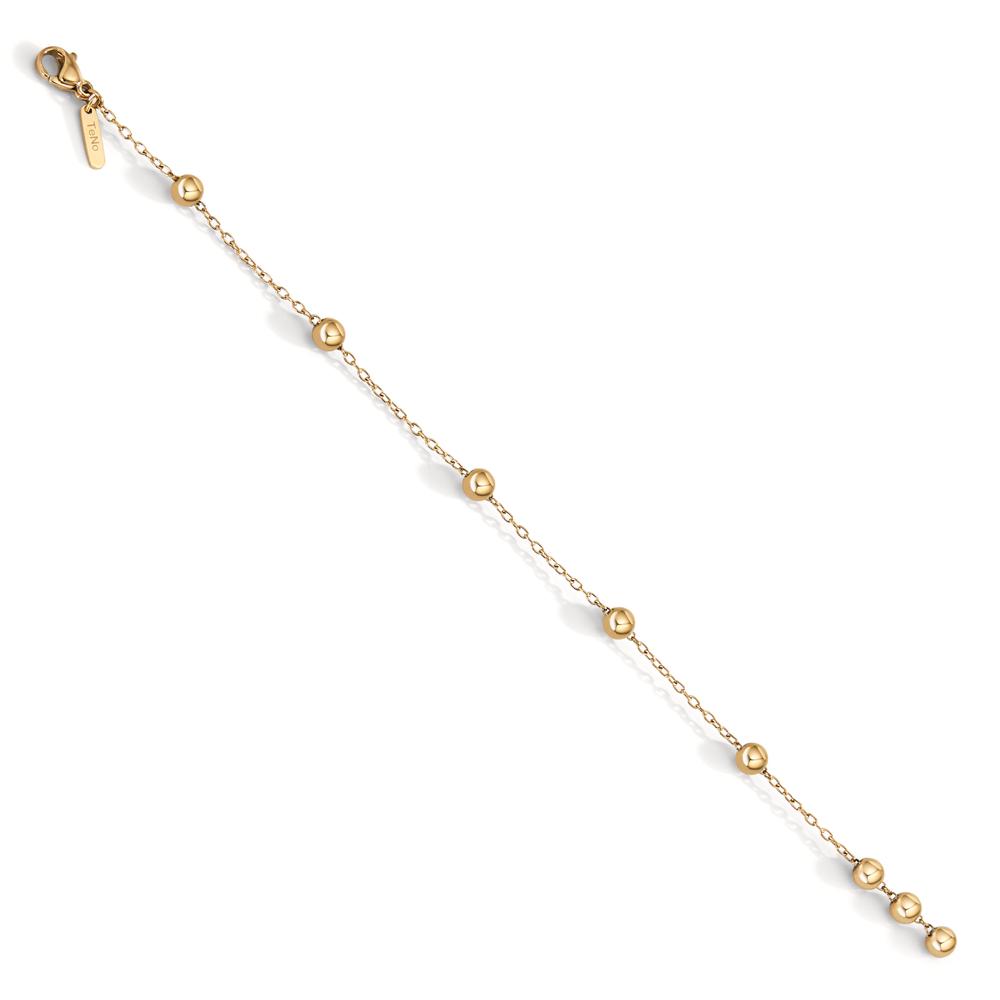 Filigran, clean und kombinationsfreudig: Das handgefertigte Kugelarmband Globe ist ein hübsches Schmuckstück für täglich neue Looks. Als Ergänzung für weitere Armbänder ist diese Armkette aus glänzendem und in Gold ionisiertem Edelstahl besonders gut geeignet.