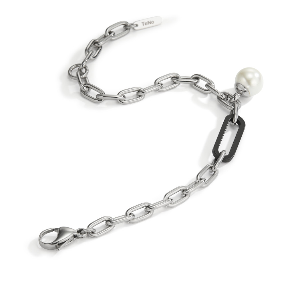 Das handgefertigte TeNo-Soho-Armband steht für aussergewöhnlichen Designschmuck und stilvollen easy Chic. Der extravagante Eyecatcher verbindet glänzenden Edelstahl mit mattschwarzem Carbon und einer weissen Muschelperle zu einem ganz besonderen Schmuckstück. Im gleichen Design passend ist auch die Halskette Soho Pearl Drop erhältlich, die ebenfalls aus wasserfestem und langlebigem Edelstahl gefertigt ist.