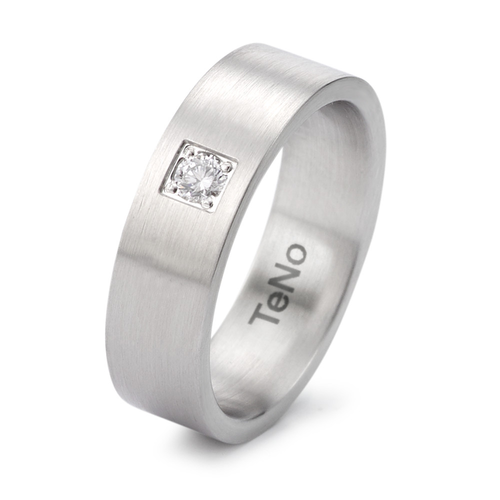 Edelstahl mit fein satinierter Oberfläche 1 Brillant Top Wesselton si 0,10 Carat Ringbreite: 6,0 mm Made in Germany