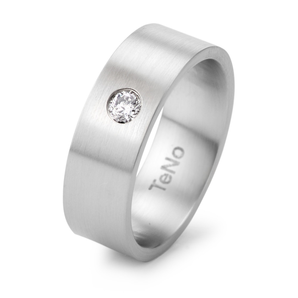 Edelstahl mit fein satinierter Oberfläche 1 Brillant Top Wesselton si 0,10 Carat Ringbreite: 7,0 mm Made in Germany