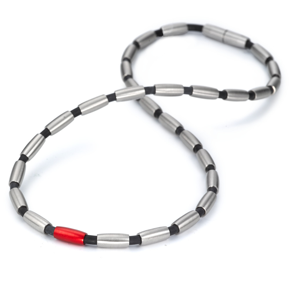 TeNo OLIVECHAIN "Ruby Red" aus Edelstahl, Kautschuk und Aluminium