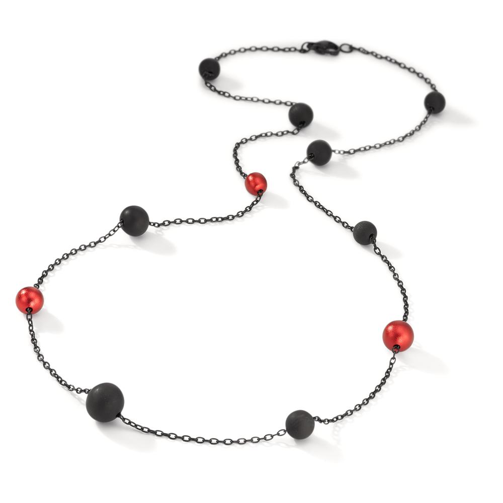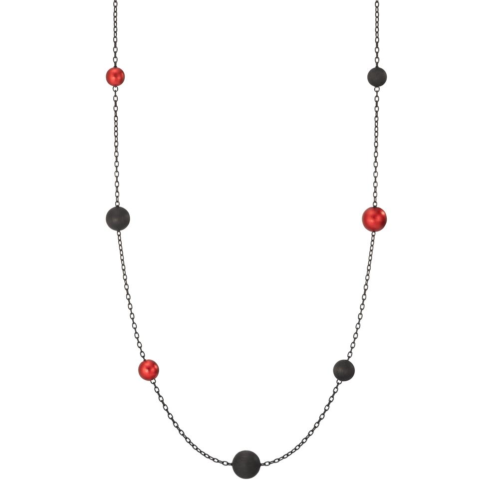 TeNo Halskette Nera aus geschwärztem Edelstahl besetzt mit Carbon- und Aluminium Pearls in Ruby Red