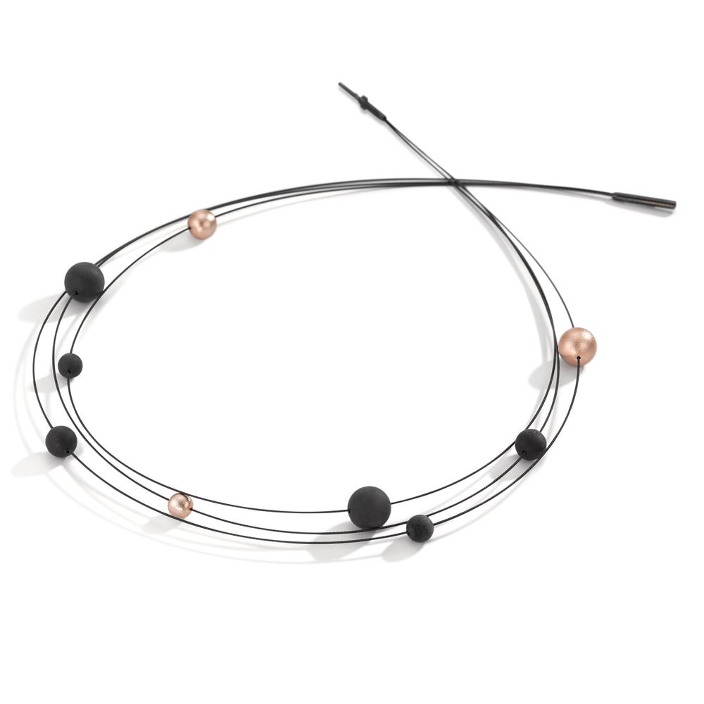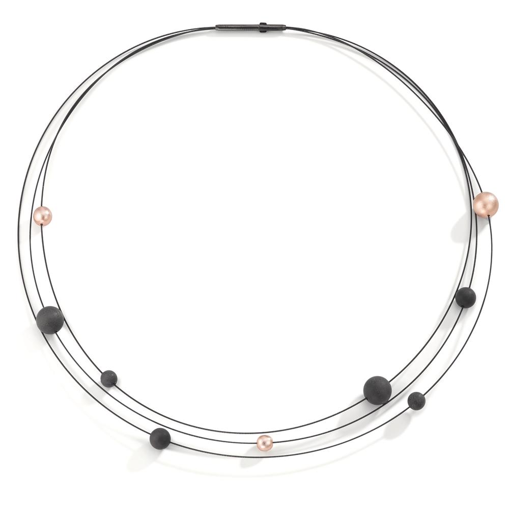 TeNo Seilcollier Nera aus geschwärztem Edelstahl besetzt mit Carbon- und Aluminium Pearls in Light Rosé