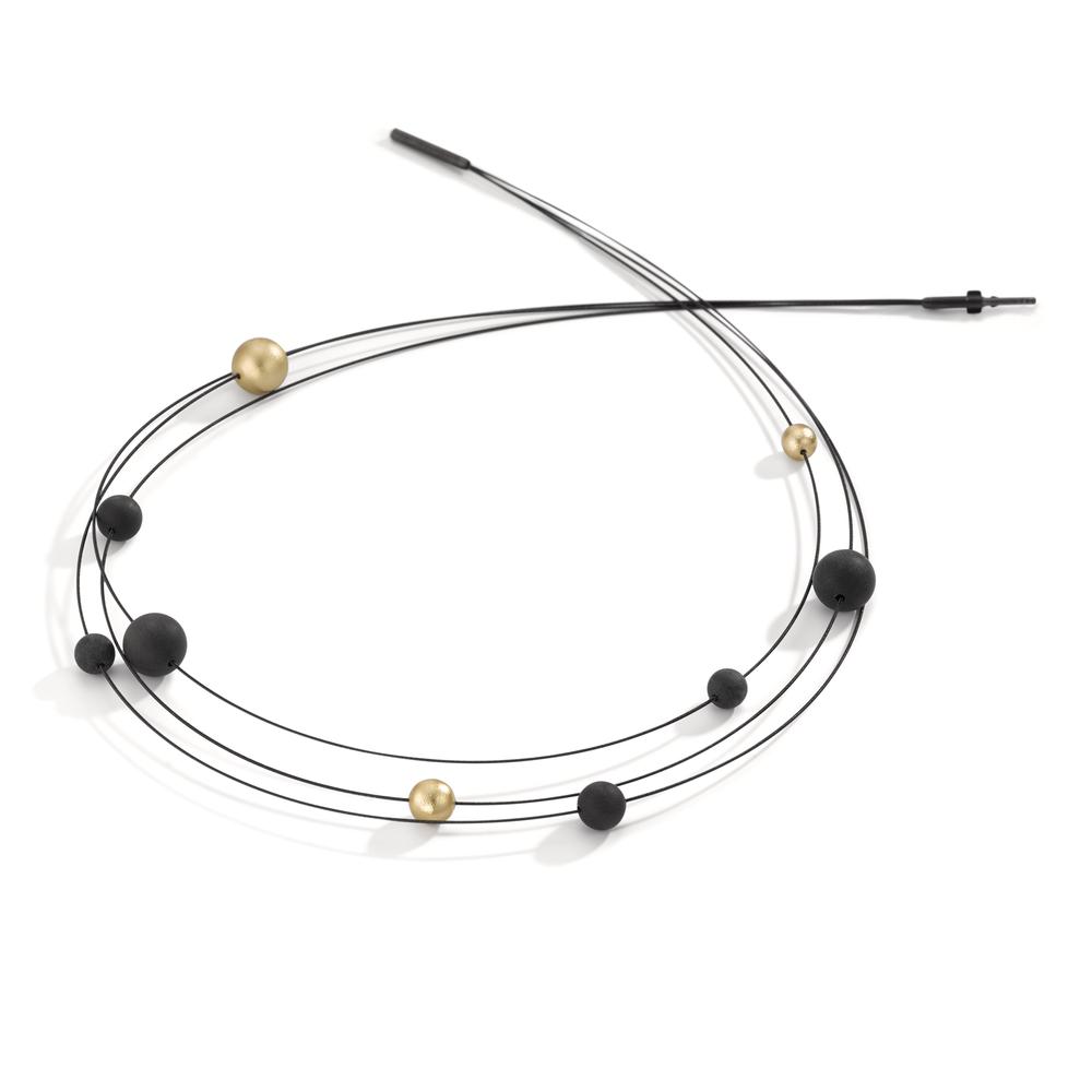 TeNo Seilcollier Nera aus geschwärztem Edelstahl besetzt mit Carbon- und Aluminium Pearls in Light Gold