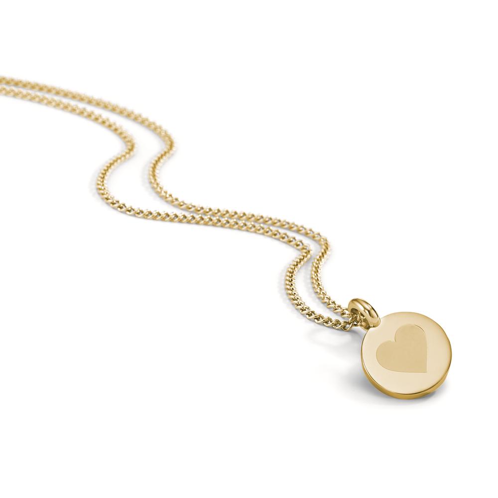Zeitlos, schlicht und hochwertig verarbeitet: An dieser goldfarbenen TeNo Essential Edelstahlkette baumelt ein glänzender Herz-Charm-Anhänger in puristischem Design. Sie ist ein ideales Accessoire für jede moderne Frau und überzeugt durch ihre hochwertige Verarbeitung.