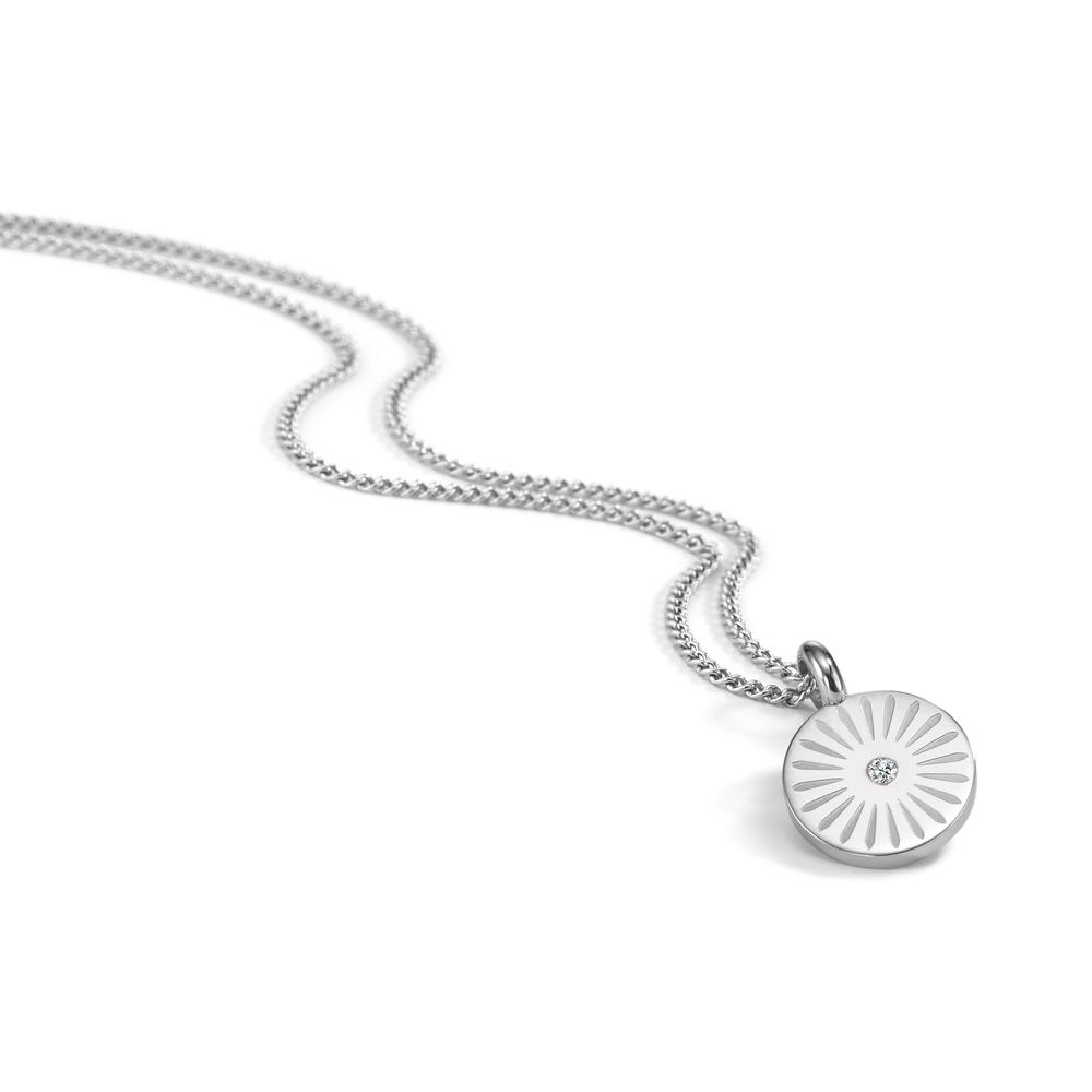 Funkelnd, verspielt und formvollendet: Diese Joy Kette im puristischen Blütendesign mit strahlendem Zirkonia kann auf der Rückseite mit einer Gravur versehen werden und nach Lust und Laune mit anderen Anhängern kombiniert werden.