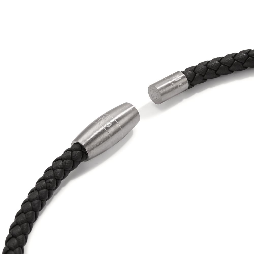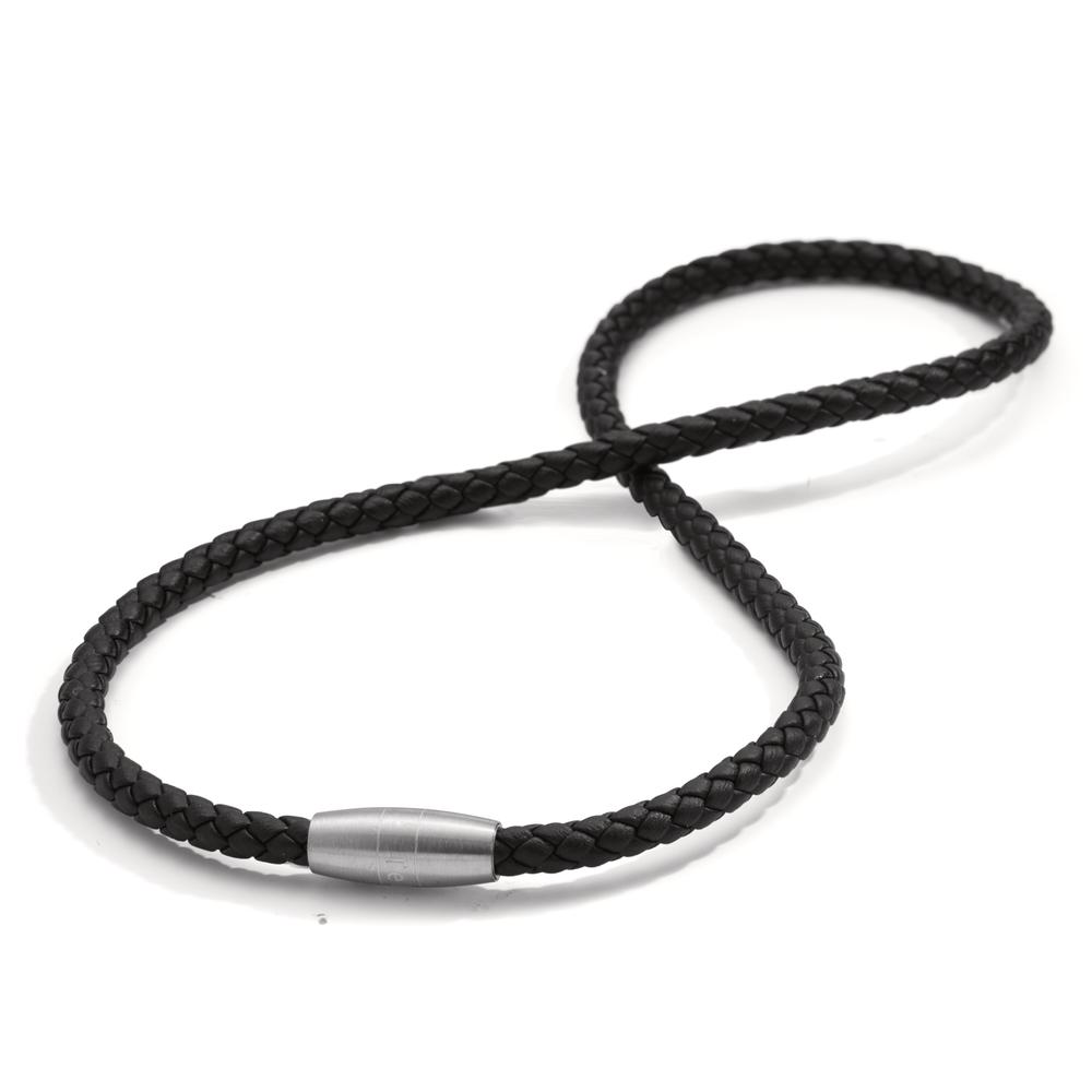Lederkette Ray, Edelstahl-Magnetverschluss mit Flechtleder schwarz, 45 cm
