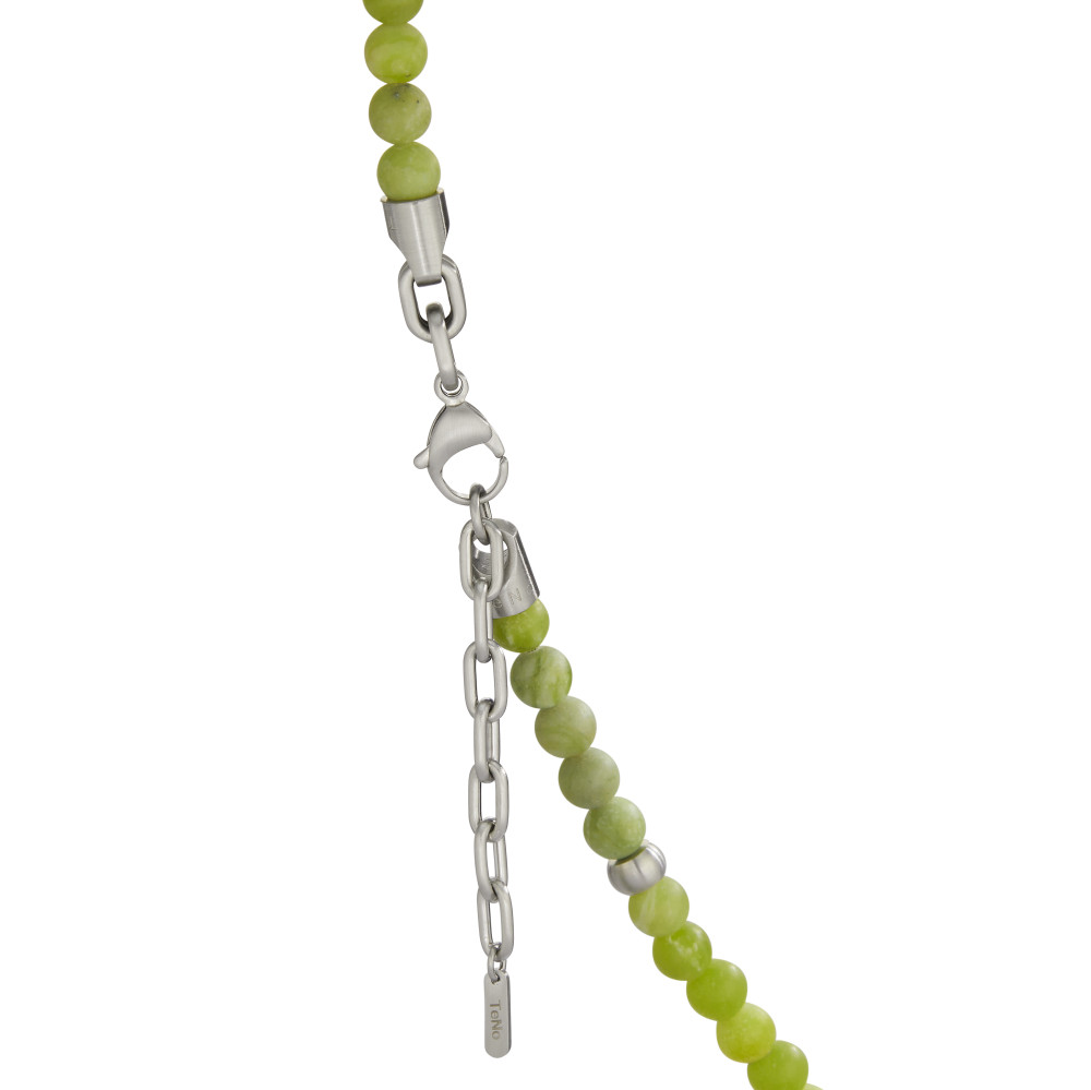 Die ERA Kette aus olivgrüner Jade ist ein ganz besonderes Schmuckstück, das für einen individuellen Casual-Look perfekt geeignet ist. Entworfen für Menschen, die nach echten Werten streben und handwerkliche Manufakturarbeit in Kleinserien in hoher Qualität zu schätzen wissen. Die Olivgrünen Perlen aus natürlicher Jade sind mit einem Seidenfinish versehen, welches die über Tausenden von Jahren entstandene Maserung stilvoll zum Vorschein bringt und jedem Look einen coolen, authentischen Style verleiht.
