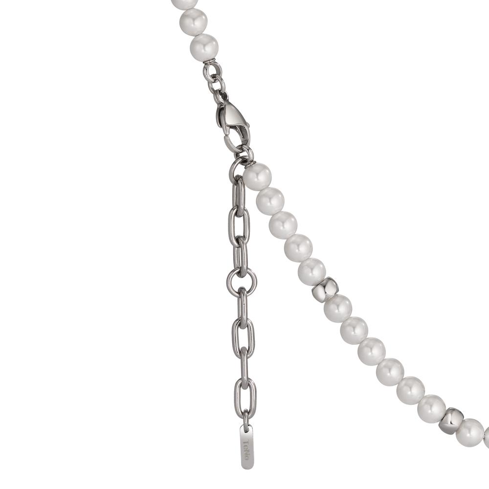 Collier Arya aus Edelstahl mit Muschelperlen, verstellbar 45-50 cm, Ø6mm