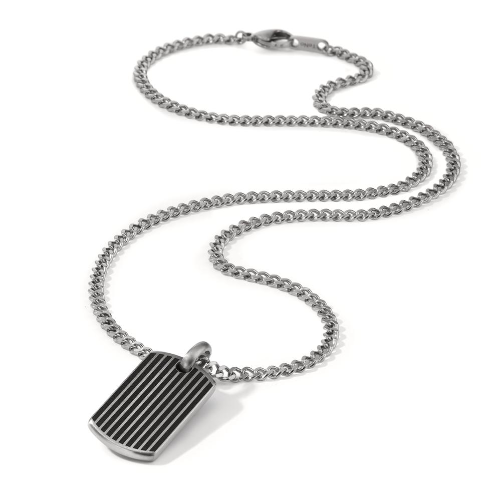 Markant, lässig und stilvoll: Diese solide Edelstahlkette aus der TeNo-Signature-Kollektion ist ein toller Eyecatcher für viele maskuline Looks. Das grafische Streifendekor ist für eine besondere Haptik tief eingraviert und anschliessend mit schwarzer Emaille ausgelegt. Wer die Kette verschenken möchte, kann auf der Rückseite des Tag-Anhängers noch eine persönliche Botschaft eingravieren lassen.