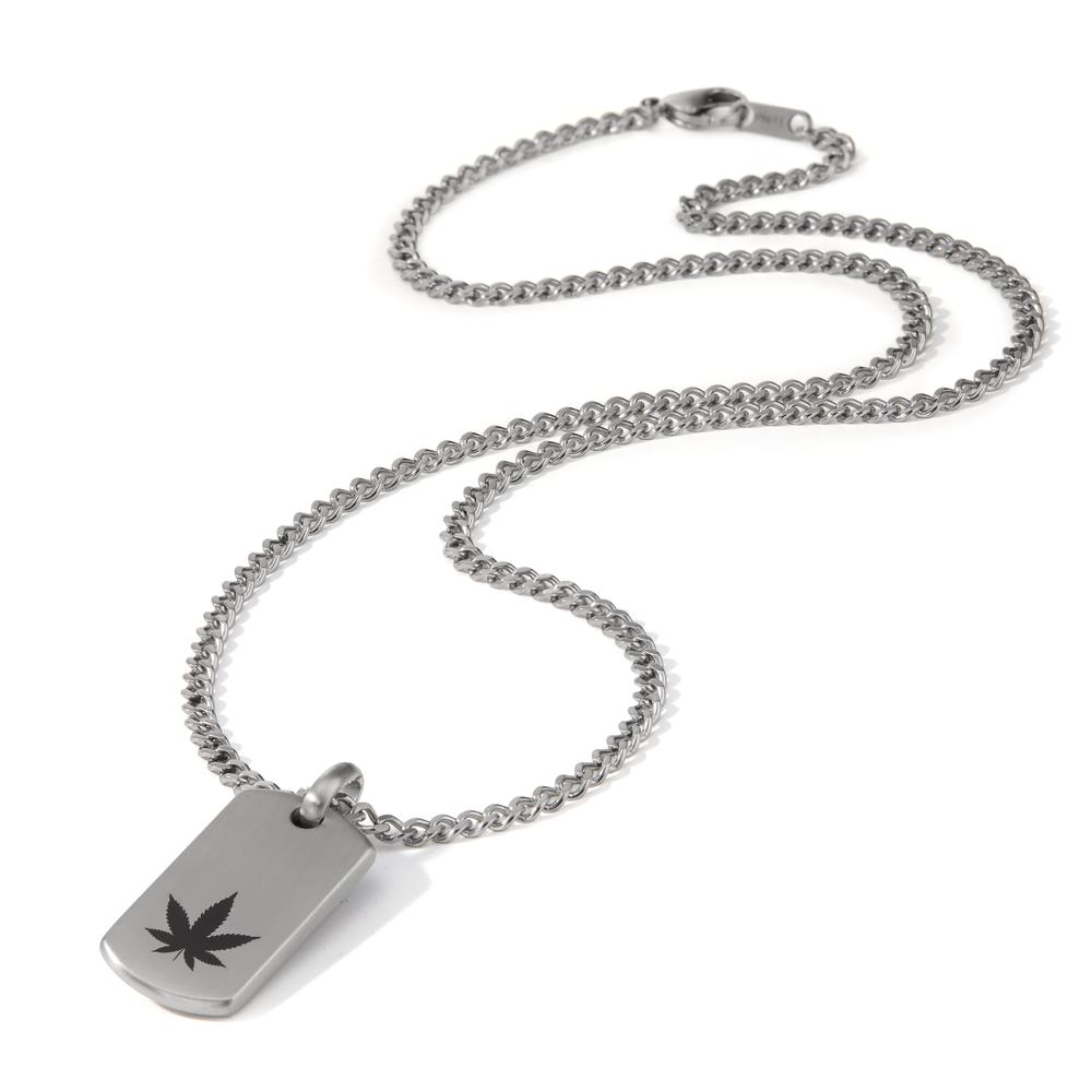 Als lässiges Symbol für die moderne Cannabiskultur bekennt sich diese TeNo-Signature-Halskette in maskulinem Design. Bereits in den 1960er-Jahren wurde Cannabis auf der ganzen Welt als Zeichen für Frieden und Toleranz bekannt. Zeitlos und minimalistisch unterstreicht die Edelstahlkette auf subtile Weise durch tief eingravierter und mit Emaille veredelter Cannabis Symbolik ein cooles Statement voller Lebensfreude.