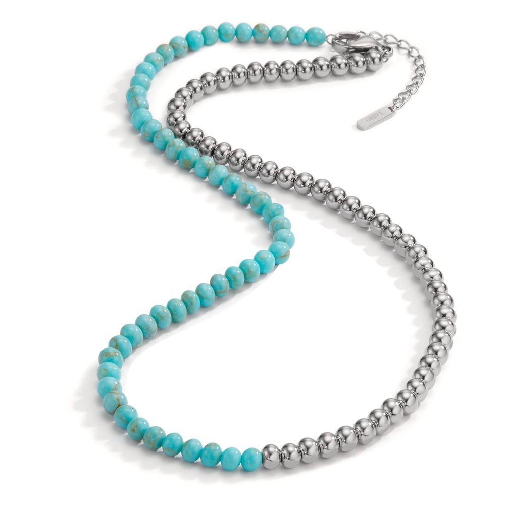 Halskette Muse Silver aus Edelstahl mit Türkis-Perlen, 42-45 cm verstellbar, Ø4 mm
