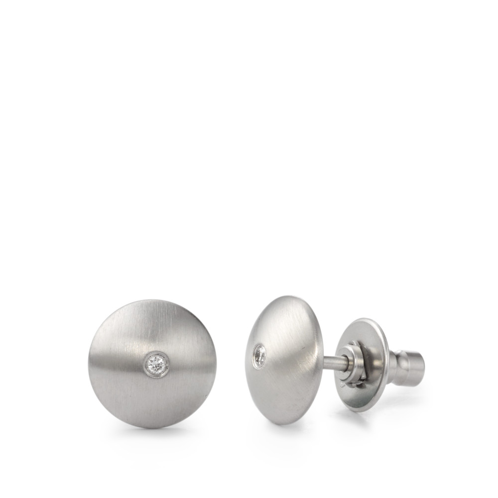 Edelstahl mit fein satinierter Oberfläche 2 Brillanten Top Wesselton si - Gesamtgewicht 0,024 Carat Ø 8,8 mm Steckverschluss mit Federmechanik Made in Germany