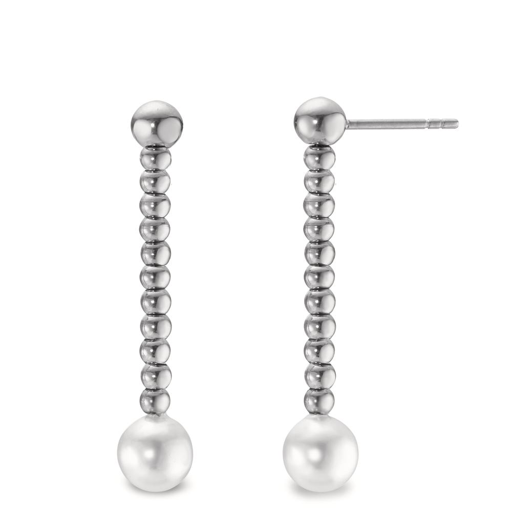 TeNo Perlohrhänger Miyako aus Edelstahl mit weissen Muschelperlen, Comfort Verschluss, 38mm