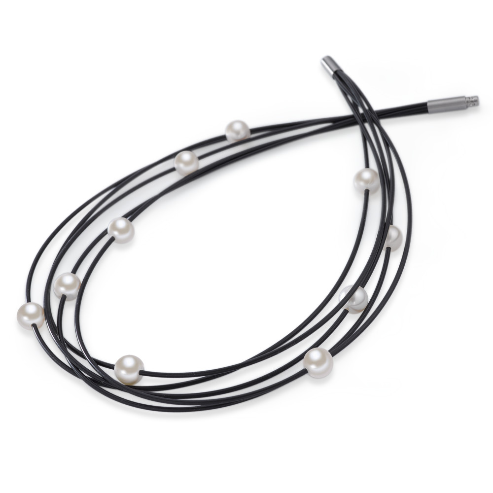Fünfreihiges Perlcollier aus Kautschuk mit 10 weißen Zuchtperlen