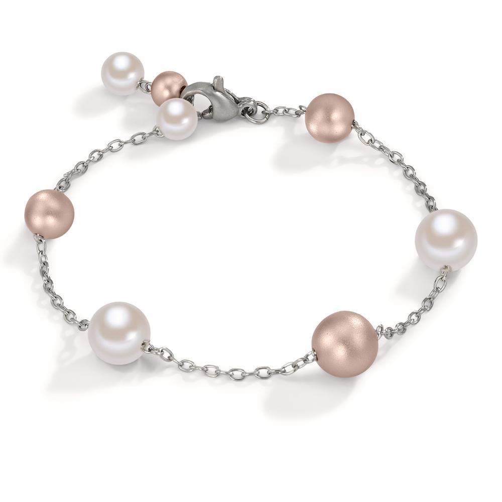 TeNo Armkette Arya Edelstahl mit Light Rosé Aluminium Pearls und Muschelperlen, 17-18.5 cm verstellbar