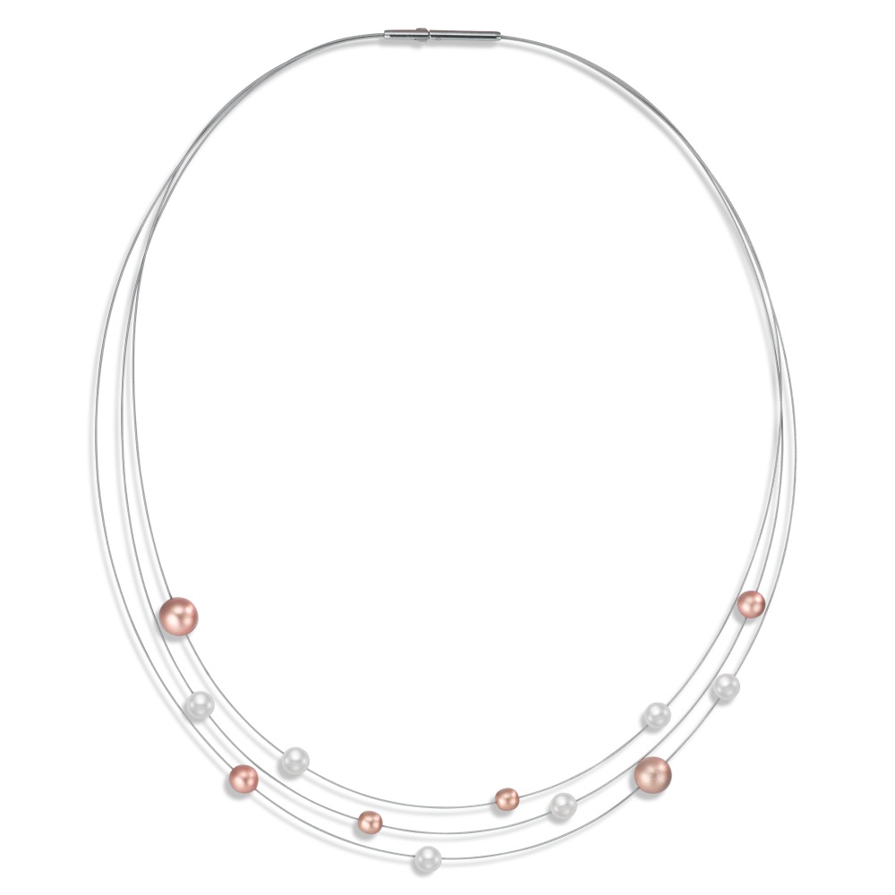 TeNo Perlcollier Arya aus Edelstahl mit Light Rosé Pearls und Muschelperlen, 42cm